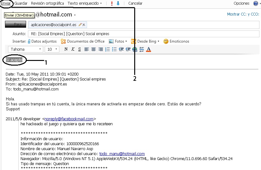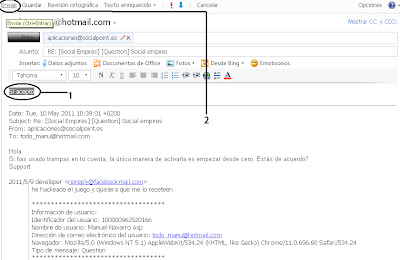 Después tipeamos donde dice Contactar con el desarrollador del Social Empires para obtener información o ayuda