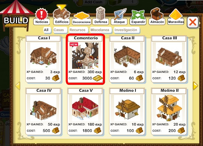 Luego de haber comprado el cementerio nos aparecerá lo siguiente: